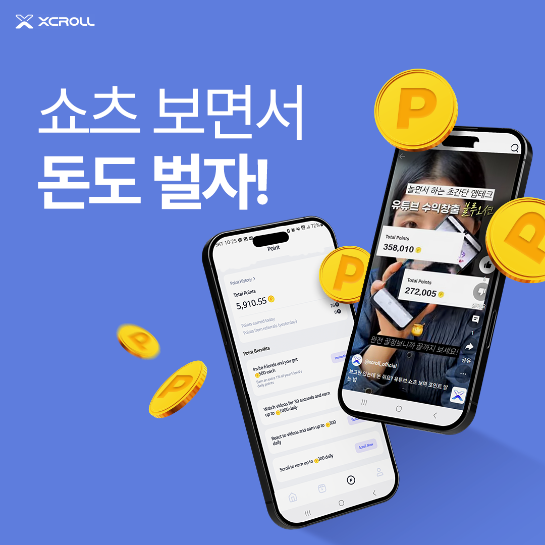 엑스크롤은 유튜브 쇼츠를 감상하기만 해도 포인트가 적립되는 앱이에요.